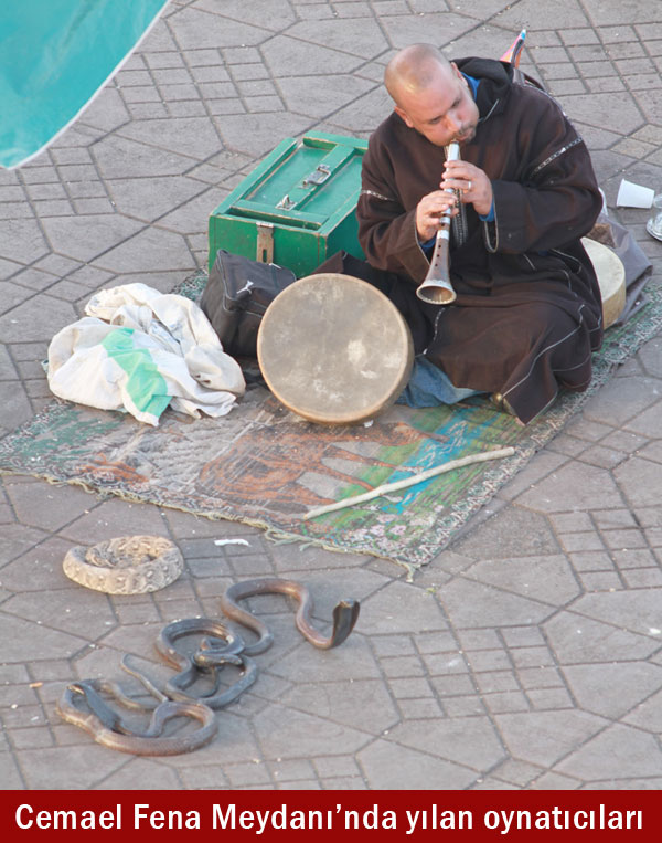 3. günümüzdü. Tur şirketi, Atlas Dağları'nın eteklerine ekstra bir tur yapılacağını, bunda Berberi yaşam tarzını yakından tanıyacağımızı, güzel bir yemek olacağını, akşama ancak dönebileceğimizi söyleyince biz bu tura katılmak yerine şehir merkezini gezmenin, alışveriş yapmanın uygun olacağını düşündük ve bu tura katılmadık. Sabah kahvaltıda garson, bizim Türk ve Müslüman olduğumuzu öğrenince daha çok ilgilendi. Lipton sallama çaylarımızı bir demlikte demleyerek servis yaptı. Hem biz hem de o memnun olduk. Kahvaltıdan sonra biraz otelin bahçesinde havuzun kenarında vakit geçirdik. Ocak ayı olmasına rağmen 20 derece sıcaklık vardı ve bazı Avrupalı turistler güneşleniyorlardı. Onlar için hatta bizim için bu ayda bu sıcaklık farklıydı tabii. Konya ile telefon muhaberemizde Konya'nın 30 cm. kar altında olduğunu ve hava sıcaklığının eksi onlarda bulunduğu haberini alıyorduk.