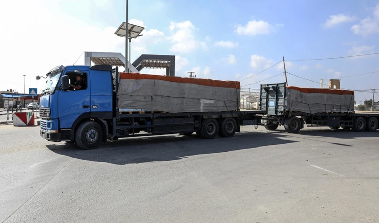 Mısır'ın "El-Kahire el-İhbariye" kanalında yayınlanan haberde, Refah Sınır Kapısı'nda bekleyen insani yardım tırlarının Gazze Şeridi'ne giriş yapmaya başladığı ifade edildi.