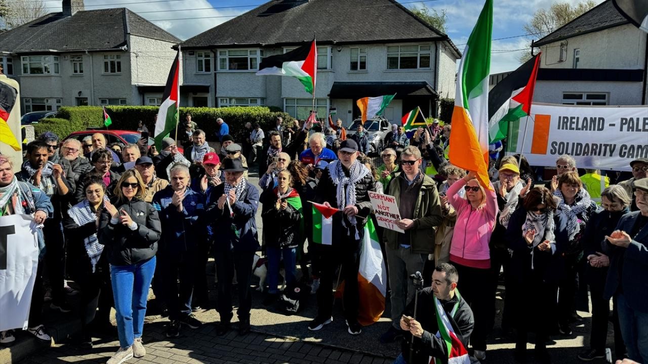 İrlanda'nın başkenti Dublin'de ABD ve Almanya büyükelçiliklerinin önünde Filistin'e destek gösterileri düzenlendi.