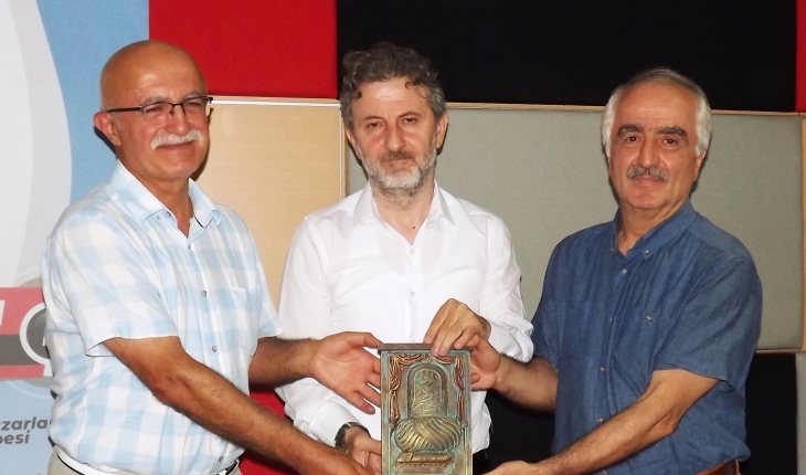 Yazar Ömer Erdoğan’a plaketini TYB Konya Şubesi Başkan Yardımcısı Doç. Dr. Ahmet Akman ve TYB üyesi Prof. Dr. Nazmi Zengin verdi. Başkan Yardımcısı Prof. Dr. Ahmet Çaycı’da TYB yayını olan ‘İnsanlığa Sözümüz Var’ adlı kitabı takdim etti.