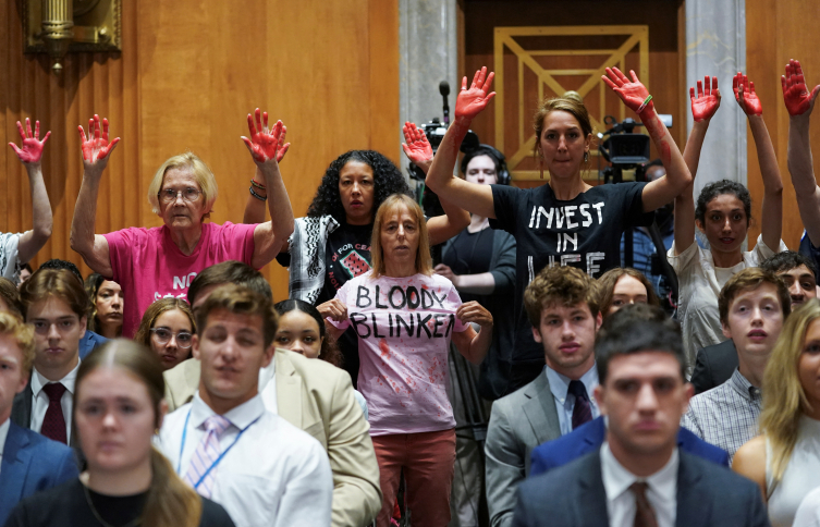 ABD Dışişleri Bakanı konuşmasına başladığı sırada salonda bulunan bir katılımcı elinde Filistin bayrağı ile ayağa kalkarak, "İsrail tarafından öldürülen Hind Receb 6 yaşındaydı. Blinken, sen Gazze kasabı olarak anılacaksın. Sen masum Filistinlilerin katili olarak anılacaksın." diye bağırdı.