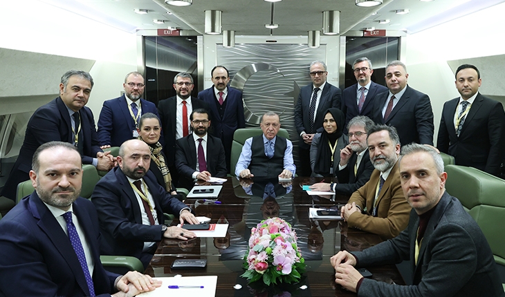 Resmi ziyaretlerde bulunmak üzere dün Ukrayna'ya giden Cumhurbaşkanı Recep Tayyip Erdoğan, Türkiye'ye dönüşünde uçakta gazetecilerin sorularını cevapladı, gündeme ilişkin değerlendirmelerde bulundu.