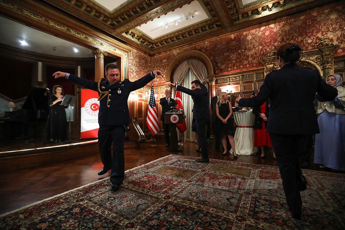 Davetin ilerleyen dakikalarında Büyükelçi Mercan ve eşi İnci Mercan, davetlilerle birlikte Ayten Alpman’ın "Memleketim" şarkısını söyledi. Sonrasında Türk subayları Zeybek oynadı.