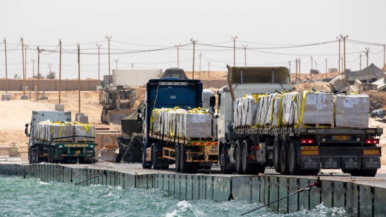 Gazze Şeridi’ne kurulan geçici iskele yoluyla insani yardımlar sürüyor.