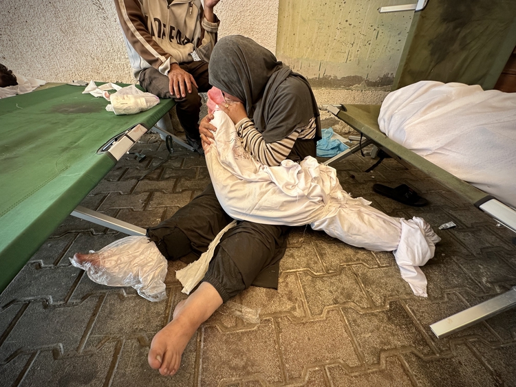 Sosyal medyadaki görüntüde, martta Aksa Hastanesi bahçesinde çocuklarının cenazesi başında ağlayan Filistinli annenin, "Lütfen üzerlerine bir battaniye örtün, onları sıcak tutun lütfen." dediği duyuluyor.