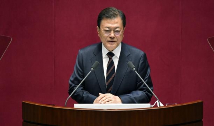 Moon parlamentodaki konuşmasında, Kore Yarımadası'nda "diyalog ve diplomasi yoluyla yeni bir barış düzeninin kurulmasına yardımcı olmak için sonuna kadar çaba göstereceğini" söyledi.