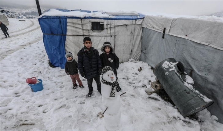Suriye'nin kuzeybatısındaki İdlib ilinde Beşşar Esed rejiminin zorla yerinden ettiği siviller çetin kış şartları altında, yoğun kar yağışı ve fırtına nedeniyle çok zor günler geçiriyor.