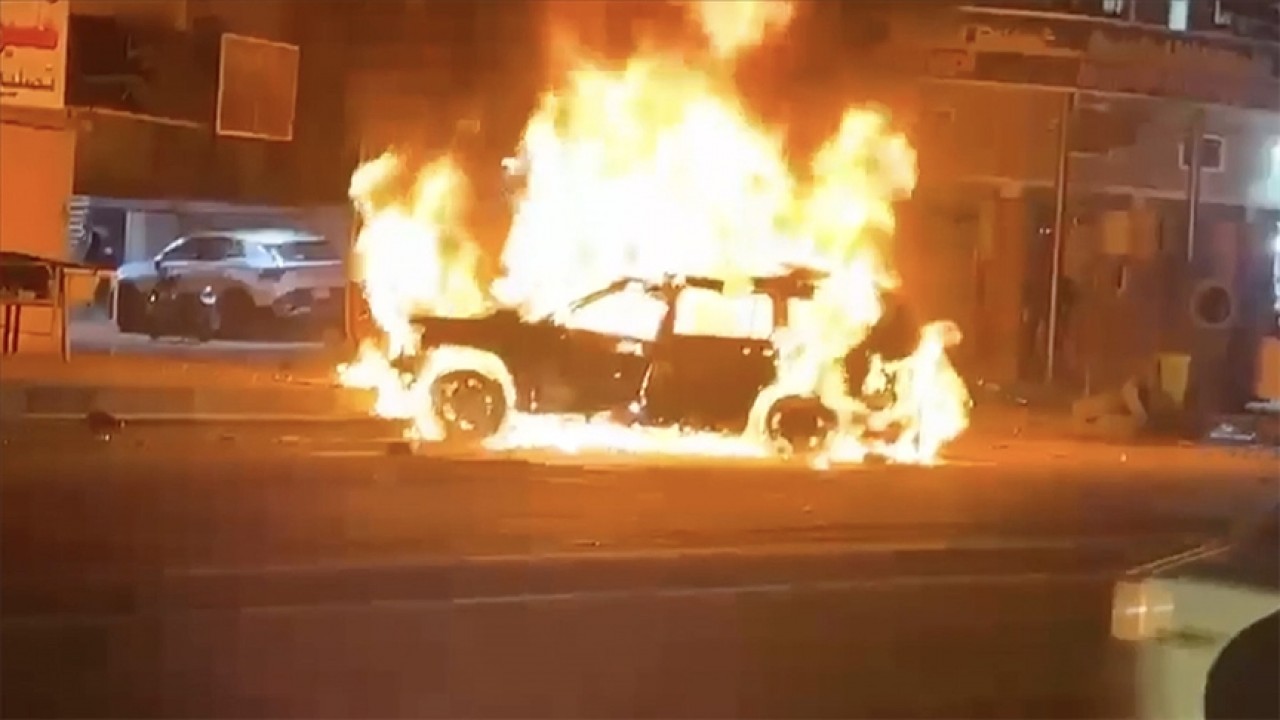 Sosyal medyada yayımlanan görüntülerde bir aracın hava saldırısına hedef olduğu öne sürüldü.