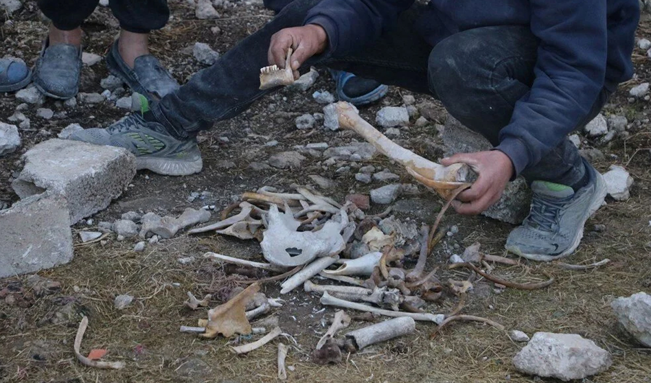Suriye'nin başkenti Şam'da Esad rejiminin saldırıları sonucu enkaza dönen Tadomon Mahallesi'nde binaların temellerinden insan kemikleri çıkartıldı. Bölgede bulunan neredeyse her binanın altından çıkarılan kemikler, Tadomon sakinleri tarafından torbalara konularak DNA eşleşmeleri için yetkililere teslim edildi.