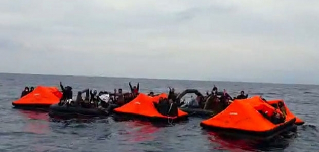Doğanbey açıklarında can salları içinde bir grup sığınmacı olduğu bilgisi üzerine Sahil Güvenlik ekipleri harekete geçti.