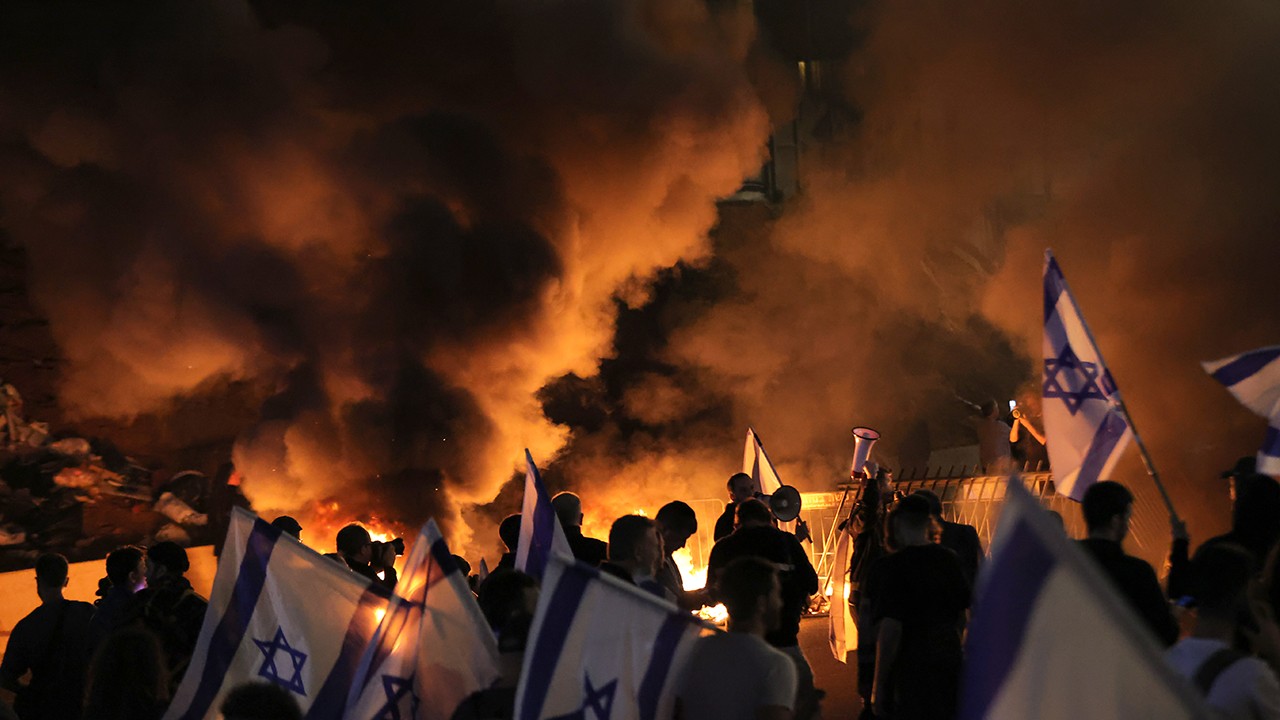Batı Kudüs’teki Başbakanlık konutunun önünde toplanan yüzlerce kişi polis barikatlarını aşmaya çalışırken, polisle protestocular arasında arbede yaşandı. Polis göstericileri dağıtmak için tazyikli su kullandı.