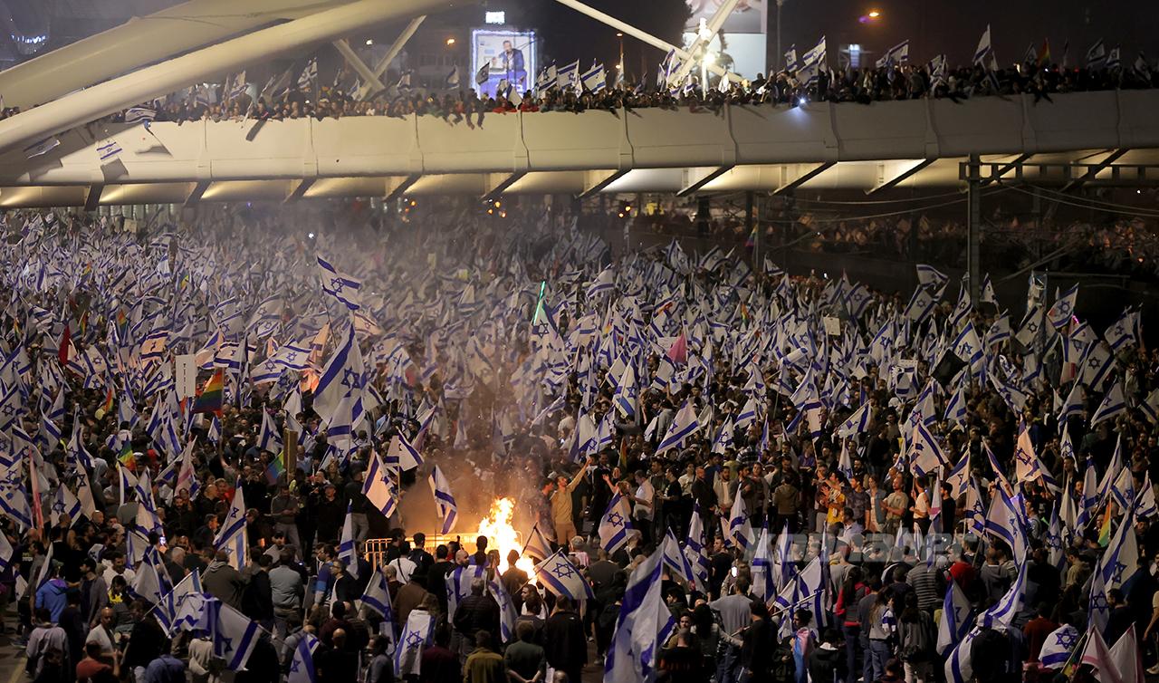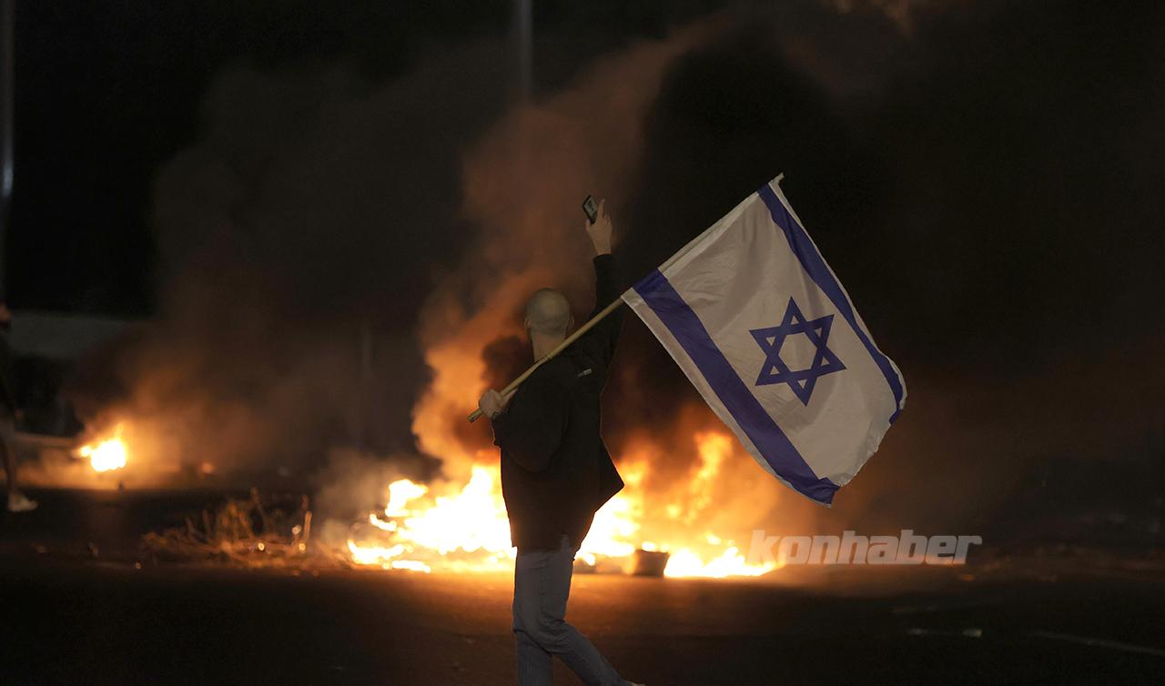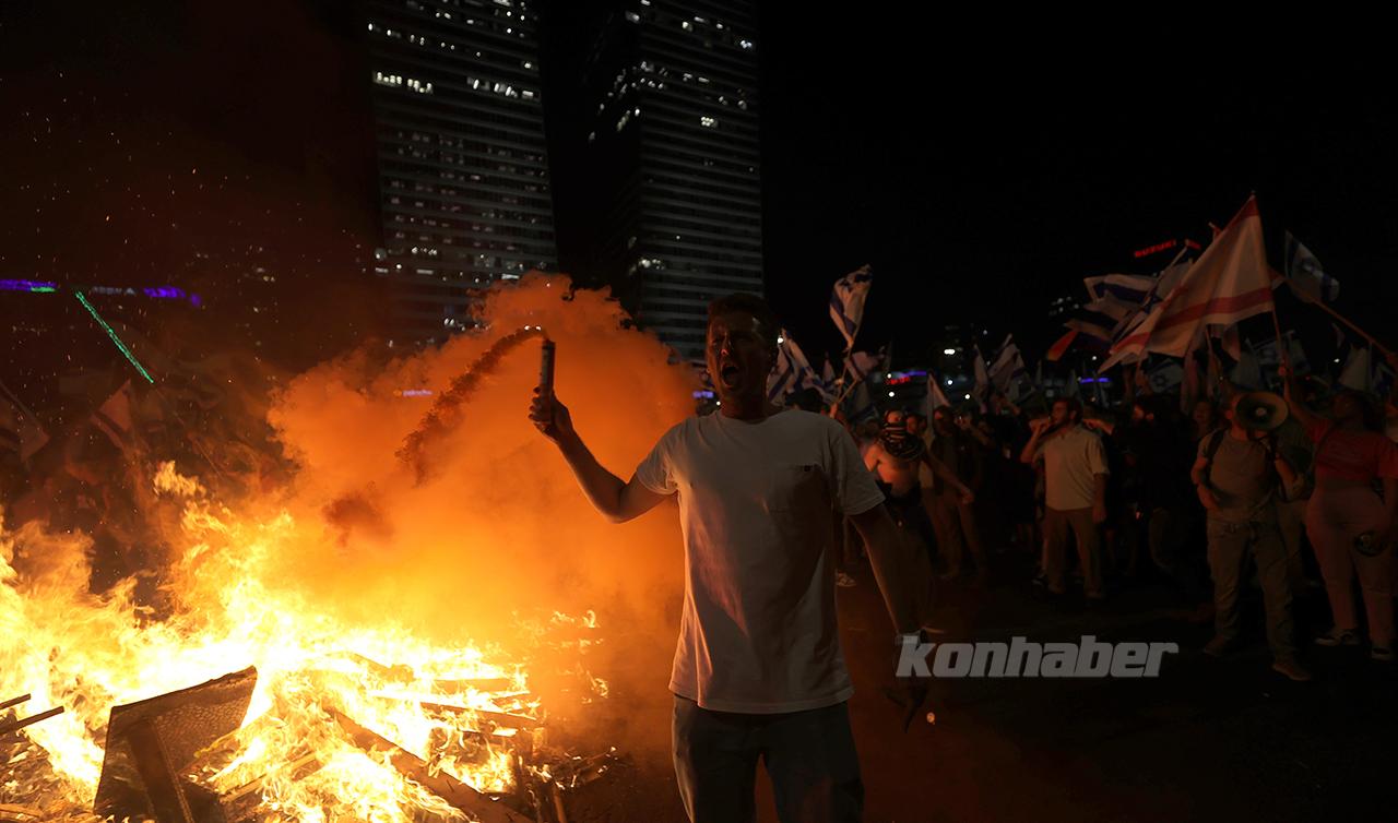 Tel Aviv’de, hükümetin yargı düzenlemesine karşı çıkan on birlerce gösterici, ellerinde İsrail bayraklarıyla kentin ana arteri Ayalon Otoyolu'nu çift yönlü trafiğe kapattı. Bazı protestocular yolda ateş yaktı.
