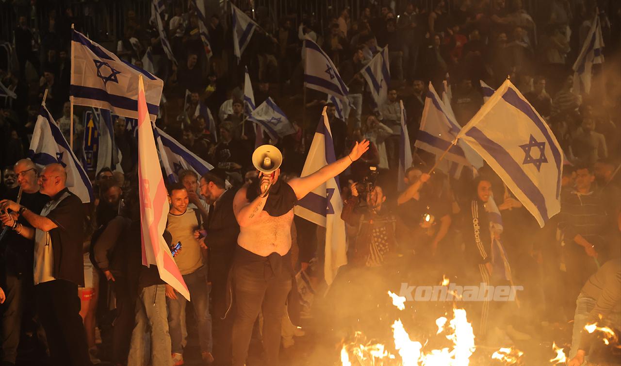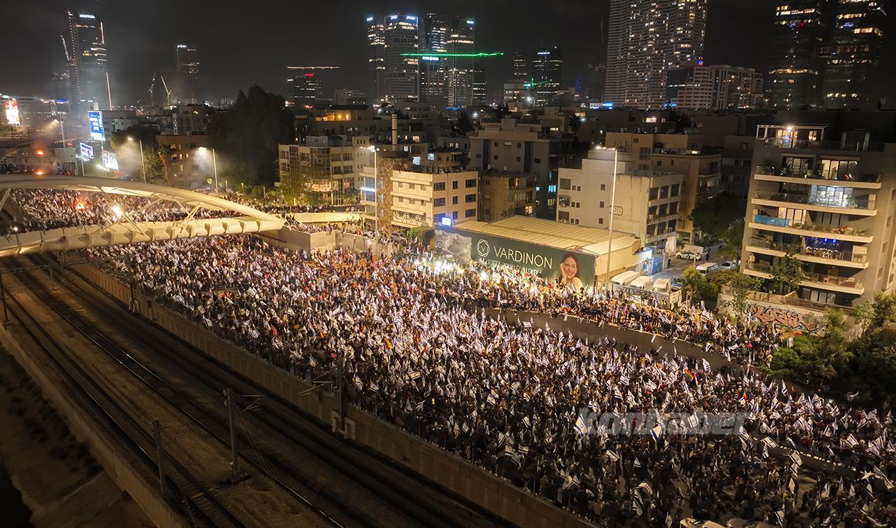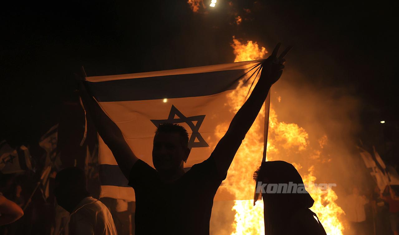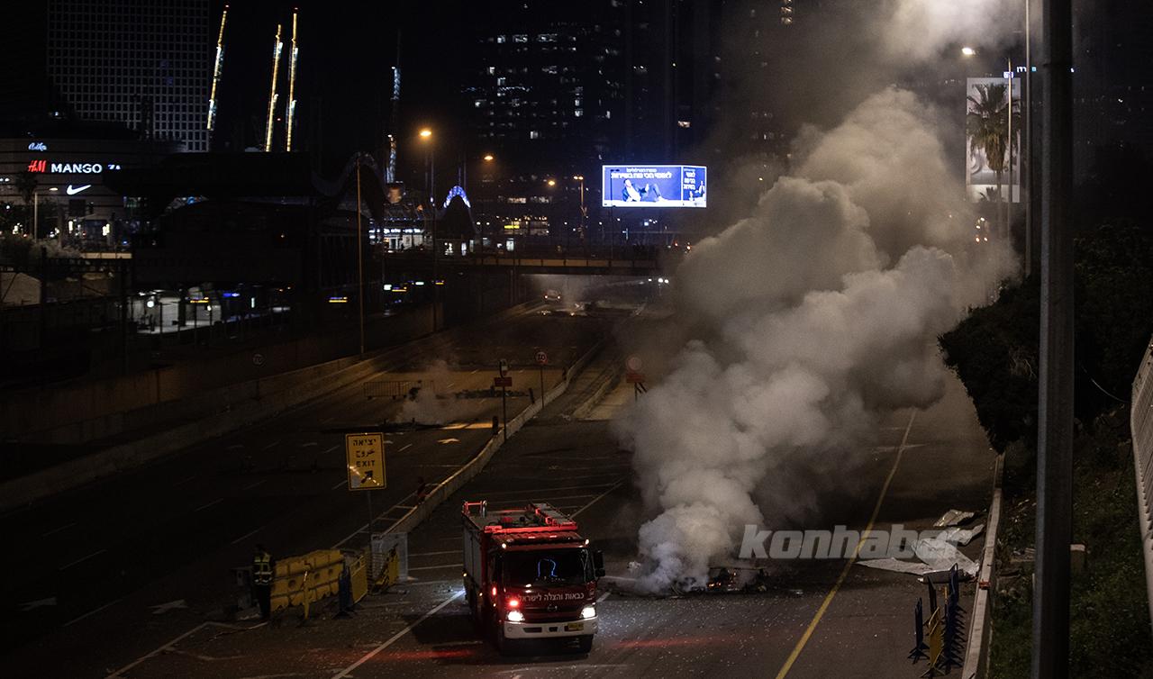 Tel Aviv’de, hükümetin yargı düzenlemesine karşı çıkan on birlerce gösterici, ellerinde İsrail bayraklarıyla kentin ana arteri Ayalon Otoyolu'nu çift yönlü trafiğe kapattı. Bazı protestocular yolda ateş yaktı.
