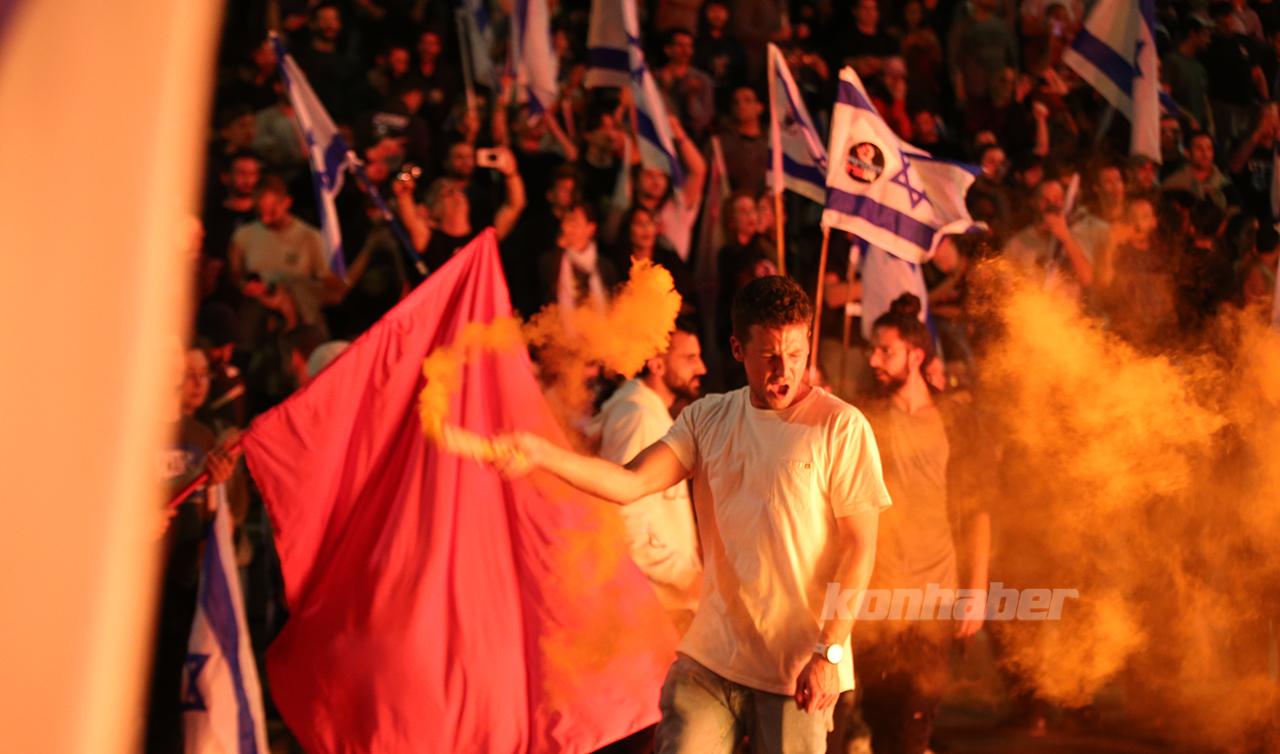 Hükümet karşıtı protestocular, Gallant'ı görevden alarak yargı düzenlemesi konusunda geri adım atmayacağının mesajını veren Başbakan Netanyahu'ya tepki olarak başta Tel Aviv ve Batı Kudüs olmak üzere ülke genelinde meydanlara indi.