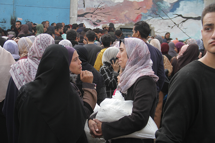 Yaklaşık 4 ay sonra gerçekleşen bu yardıma erişebilmek için yüzlerce Filistinli UNRWA'ya ait bir dağıtım merkezine akın etti. Yardım dağıtımı kapsamında her aileye 5 kilogramlık un verildi.Filistinli Yahya Ebu Reyyale (37), unu, 40 gündür beyaz ekmek yemeyen 4 çocuğu için aldığını söyledi.