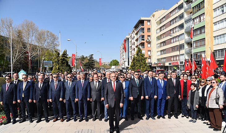 Konya'da Anıt Meydanı'nda gerçekleştirilen tören, İl Milli Eğitim Müdürü Seyit Ali Büyük'ün Atatürk Anıtı'na çelenk sunumuyla başladı.