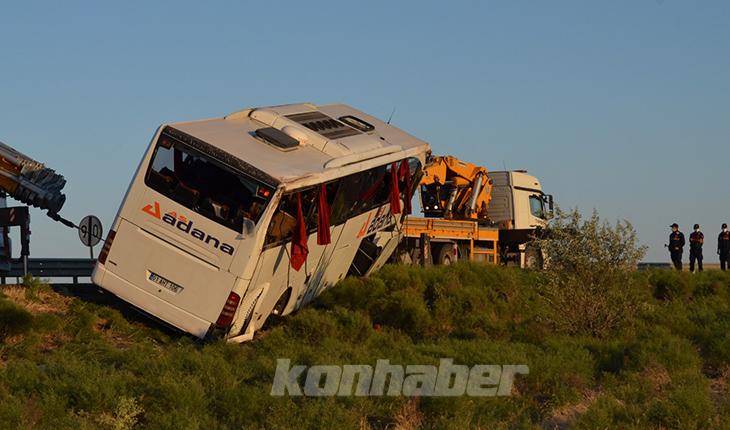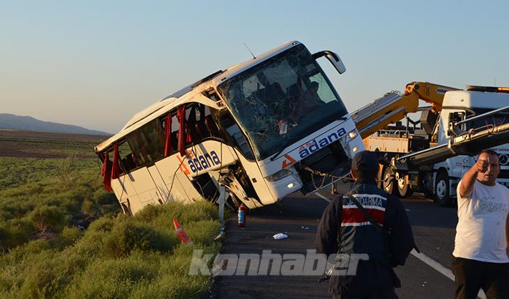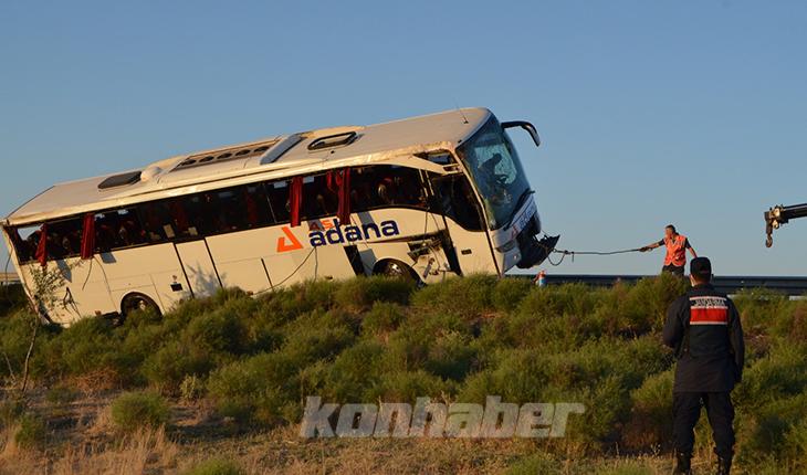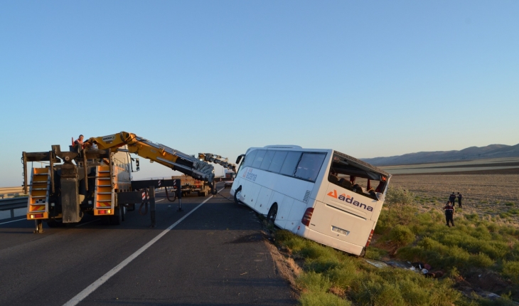 Kerem Özbek (38) idaresindeki 01 AHT 106 plakalı yolcu otobüsü, Aksaray-Ankara kara yolunun 45. kilometresinde şarampole devrildi.