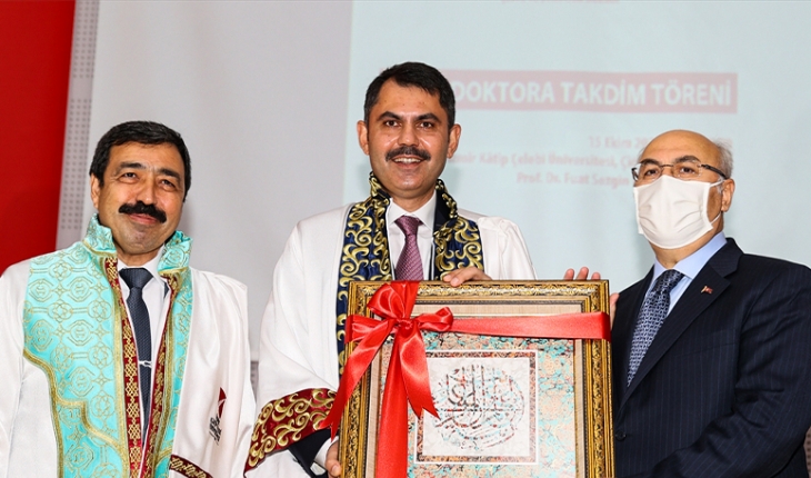 İzmir Katip Çelebi Üniversitesi (İKÇÜ) tarafından Bakan Kurum'a fahri doktora unvanı verilmesi dolayısıyla İKÇÜ Prof. Dr. Fuat Sezgin Konferans Salonu'nda tören düzenlendi.