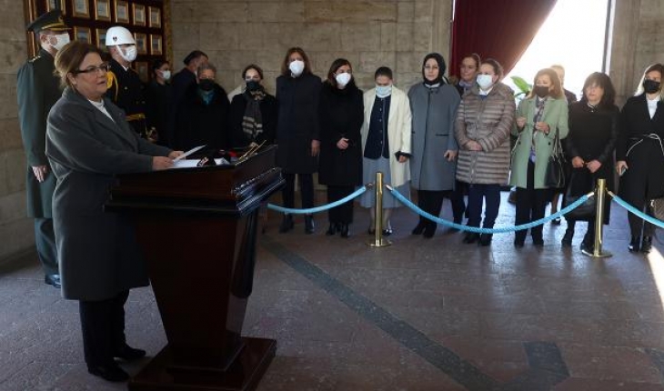 Bakan Yanık ve kadın milletvekilleri mozole'ye çelenk bıraktı, bir dakikalık saygı duruşunda bulundu.