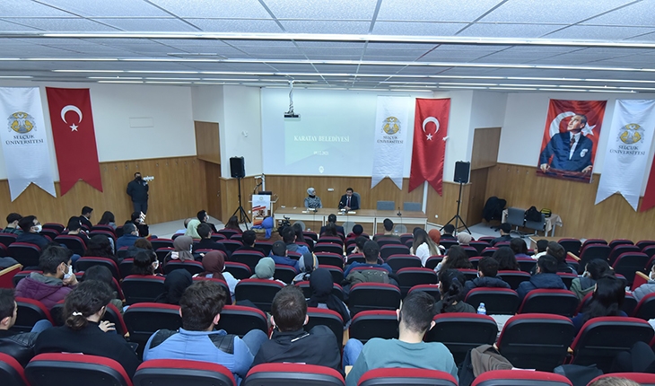 Karatay Belediye Başkanı Hasan Kılca, Selçuk Üniversitesi Ziraat Fakültesi Tarım Ekonomisi Bölümü Öğrencileri tarafından düzenlenen “Ekonomik Söyleşiler; “Belediyelerin Tarımsal Proje Potansiyeli” konulu söyleşi ile öğrencilerle buluştu.