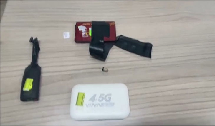 T.Y. isimli şahsın yapılan üst aramasında, 1 adet görüntü aktarıcı kamera düzeneği, 1 adet ses alıcı kulaklık, 1 adet sim kartı bulunan internet sağlayıcı wifi düzeneği, 1 adet veri akratım cihazı, 1 adet sim kartı bulunan veri aktarıcı cihaz ele geçirilerek el konuldu.
