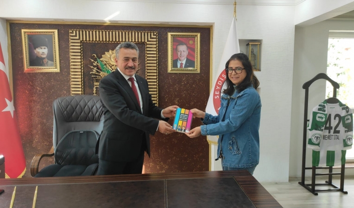 Genç Yazar Sultan Çoban, kaleme aldığı ‘Aklından Semeyi Geçirme’ adlı kitabını imzalayarak Seydişehir Belediye Başkanı Mehmet Tutal’a hediye etti.