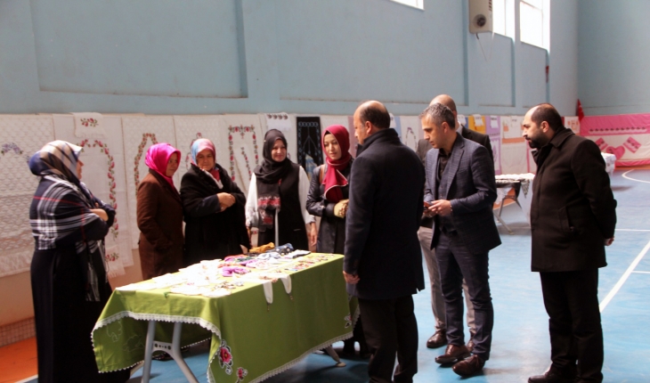 Halkapınar Halk Eğitim Merkezi Müdürlüğünce düzenlenen makine nakışları sergisi açıldı.