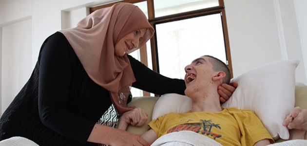 Konya'da yaşayan iki çocuk annesi 39 yaşındaki Nazmiye Korkmaz, 1 yaşındayken serebral palsi (SP) teşhisi konulan 16 yaşındaki oğlu Zekeriya'ya büyük sevgi ve ilgiyle bakıyor.