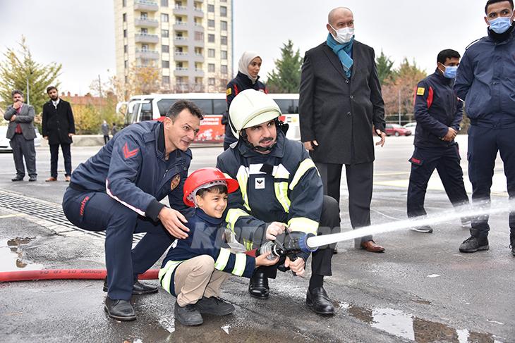 Konya İtfaiyesi, yangın ve doğal afetler konusunda bilinçlendirme çalışmaları kapsamında Konya merkezdeki 27 bin ilkokul birinci sınıf öğrencisine yönelik eğitimlerini de sürdürüyor.