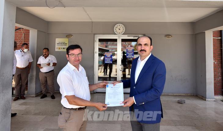 Başkan Altay, Türkiye Odalar Borsalar Birliği (TOBB), Avrupa Birliği ve Konya Ticaret Odası (KTO) ortaklığıyla yürütülen “Mahir Eller Projesi” kapsamında Büyükşehir Belediyesi Ulaşım Dairesi Başkanlığı bünyesindeki Sürekli Eğitim Merkezi (SÜMER) koordinasyonunda Otobüs İşletme ile Raylı Sistem Şubesi Müdürlükleri’nde görevli personellere kazandırılan mesleki yeterlilik belgelerini de verdi.