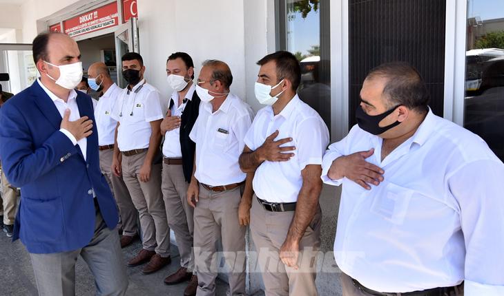 Konya Büyükşehir Belediye Başkanı Uğur İbrahim Altay, Büyükşehir Belediyesi Ulaşım Dairesi bünyesindeki otobüs ve tramvay hareket merkezlerini ziyaret ederek, mesleki yeterlilik belgesi kazanan çalışanlara belgelerini verdi.
