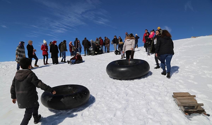 Konya’nın Hadim ilçesindeki 2 bin rakımlı Armağanlar yaylasında düzenlenen kayak festivalinde katılımcılar naylon, şambrel ve yaptıkları özel kayak yatakları ile karın keyfini çıkardı.