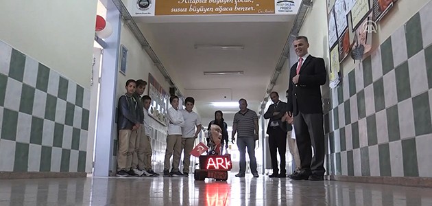 Erenköy Zeki Altındağ Ortaokulu öğrencilerinin fen bilimleri dersi kapsamında yaptığı, kumandayla kontrol edilebilen robot, teneffüslerde okul koridorlarında öğrencilerle dolaşıyor.