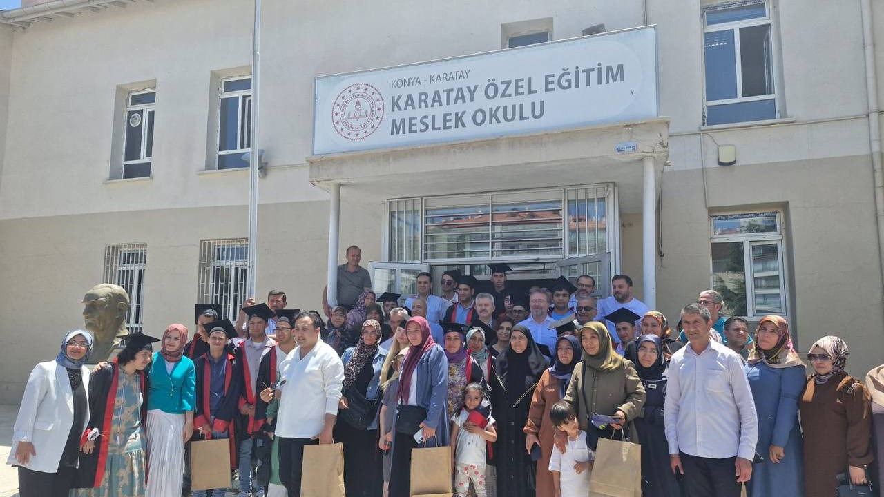 KTÜN Rektör Yardımcısı Prof. Dr. Hüseyin Deveci, Toplumsal Katkı ve Sosyal Sorumluluk Komisyonu üyeleri Prof. Dr. Bilgehan Yılmaz, Genel Sekreter Yardımcısı Şaziye Çetin ve Sağlık, Kültür ve Spor Dairesi Başkanı Ali Ziya Yalçınkaya ile Karatay Özel Eğitim Meslek Okulu’nun mezuniyet törenine katıldı. KTÜN heyeti, özel öğrencilerin bu anlamlı günlerindeki sevincine ortak oldu.