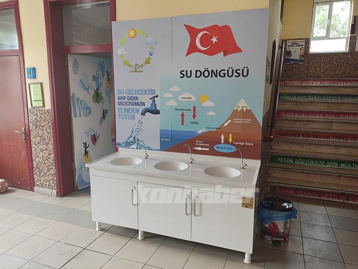 Program öncesi öğrencilere yönelik okul koridorunda yapılan su arıtma çeşmesinin tanıtımı gerçekleştirildi.