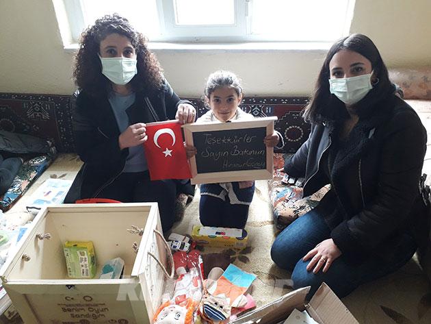 Kırsal mahallelerde yaşayan toplamda 15 çocuğa oyun sandığı setleri İlçe Milli Eğitim Müdürlüğü tarafından oluşturulan ve komisyonda yer alan öğretmenler tarafından ulaştırıldı.