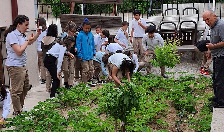 Okulda görev yapan öğretmenler, öğrencilerle birlikte oluşturulan bahçeyi önce ekime hazır hale getirdi, ardından farklı sebze ve meyve fidelerini toprakla buluşturdu. Okulda yürütülen çalışma ile organik tarımın önemine dikkat çekildi.