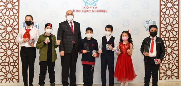 İstiklal Marşı’nın Kabulü ve Mehmet Akif Ersoy’u Anma Günü çerçevesinde “On Kıta Bir Vatan İlelebet İstiklal” temasıyla Konya genelinde ilkokul, ortaokul ve lise düzeyinde düzenlenen resim, şiir ve kompozisyon yarışmaları ile İstiklal Marşı’nı güzel okuma yarışmasında dereceye giren öğrencilere Konya İl Milli Eğitim Müdürü Seyit Ali Büyük tarafından ödülleri takdim edildi.