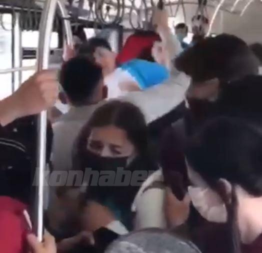 Konya’da belediye otobüsünde kavga eden liselilerin görüntüsü başka bir öğrenci tarafından anbean kaydedildi.