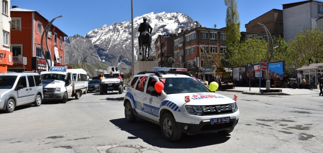 Hakkari merkez ve Yüksekova ilçesinde polis ekiplerinin 23 Nisan Egemenlik ve Çocuk Bayramı dolayısıyla oluşturdukları konvoya vatandaşlar ilgi gösterdi.