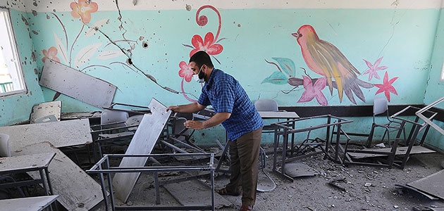 Filistin Eğitim ve Öğretim Bakanlığı, İsrail'in 10 Mayıs'ta abluka altındaki Gazze Şeridi'ne başlattığı 11 gün süren saldırılarında 55'i anaokulu 187 okulun zarar gördüğünü açıkladı.