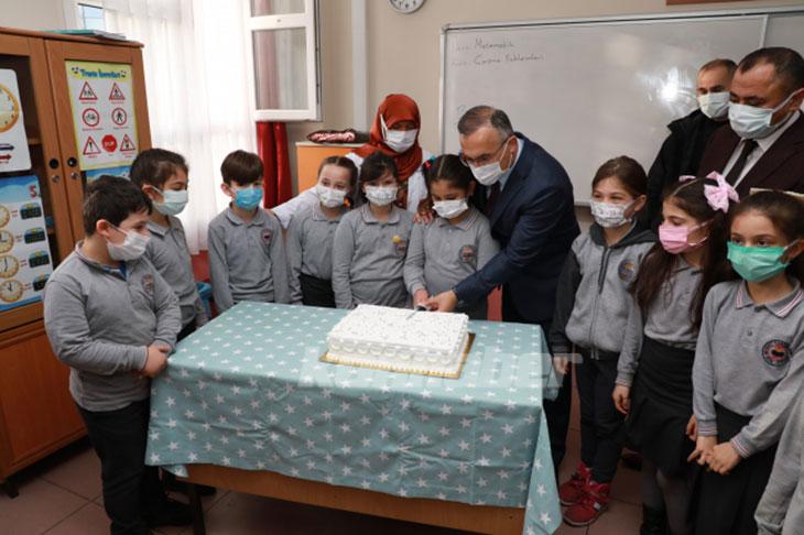Konunun iletildiği Vali Çeber, İl Milli Eğitim Müdürü Engin Emen ile gittiği okulda, 3-B sınıfını ziyaret etti, seçimi kazanan Fatıma Minel Karaoğlu'nu kutladı.