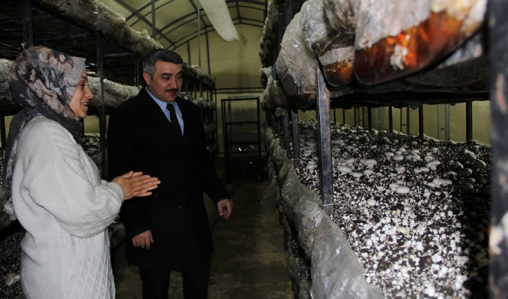 Konya’nın Yalıhüyük ilçesinde Kaymakam İbrahim Yazıcı, kadın girişimci Meltem Gözel'e ait mantar serasına ziyaret etti.