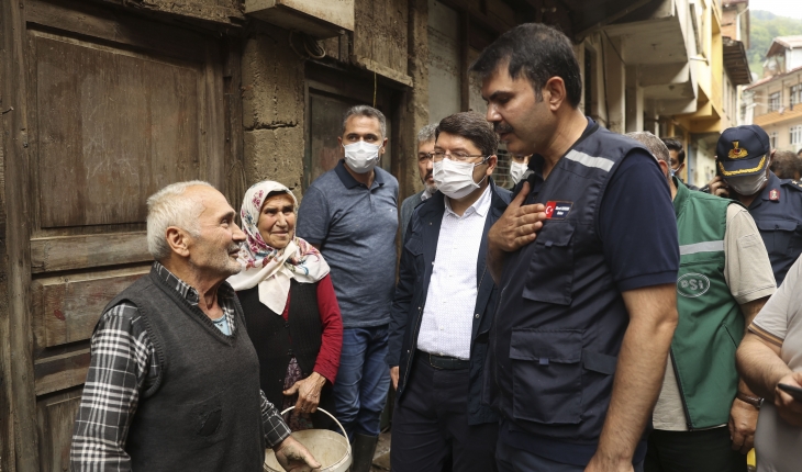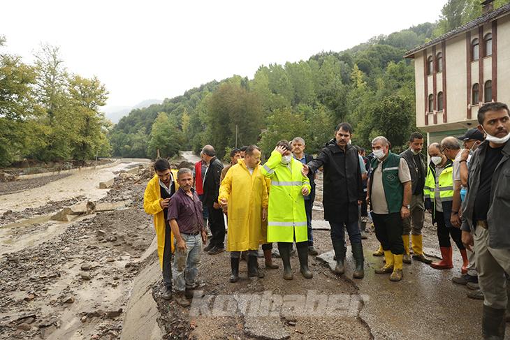 Çevre ve Şehircilik Bakanı Murat Kurum, Bartın'ın Ulus ilçesinde sağanağın ardından meydana gelen selden etkilenen alanlarda incelemelerde bulundu.