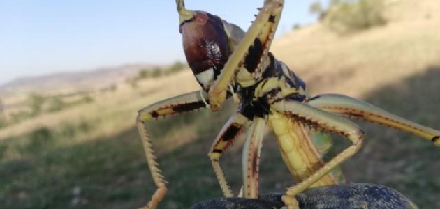 İlçe Tarım ve Orman Müdürü Metin Kaplan da boyu 20 santimetreye kadar ulaşabilen bu türün, özellikle geceleri avlanan etçil çekirge olduğunu söyledi.