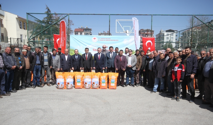 Konya'nın Beyşehir ilçesinde, üreticilere yağlık ayçiçeği tohumu verildi.