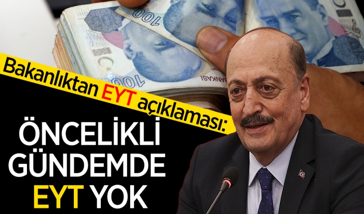Bakanlık'tan yapılan açıklamada, "Bakanlığımızın öncelikli gündeminde EYT ile ilgili bir çalışma bulunmamaktadır" dedi.