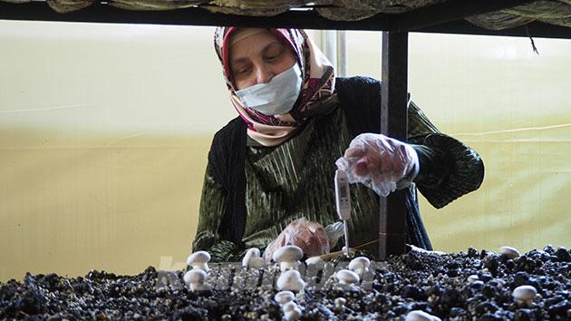 Konya'nın Bozkır ilçesinde, devletten aldığı destekle mantar üreten ev hanımı Esma Sevim, kendi işini kurmanın mutluluğunu yaşıyor.