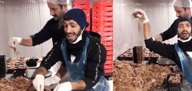 TikTok uygulamasına video çekip yükleyen hazır dönem işletmesi çalışanı 2 kişinin, müzik eşliğinde, maskesiz bir şekilde paketleme yaptığı görüldü.