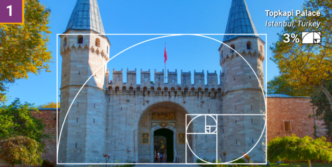 Mimari bir eserin parçalarının uyum bakımından matematiksel ve geometrik bağlantısının mükemmeliyetini ortaya koyan altın orana göre, en güzel saray, Topkapı Sarayı oldu.